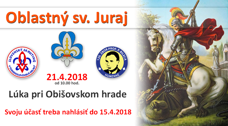 Tento rok pripravila oblasť pre všetkých skautov spoločnú oslavu sv. Juraja ktorá sa uskutoční 21.4.2018 na lúke pri Obišovskom…