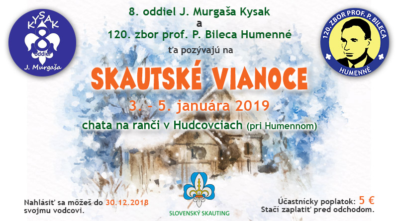 Pozývame ťa na spoločné Skautské Vianoce s 8. oddielom J. Murgaša Kysak, ktoré sa uskutočnia od 3. do 5.…